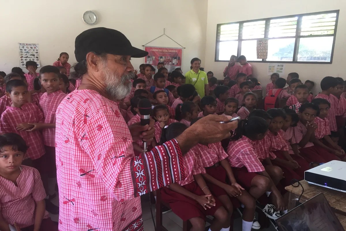 Op Saparua maken we afspraken met de kepala UPTD Pendidikan. Dat is het hoofd van het verbindingskantoor van het regionale departement van onderwijs In Masohi. Hij is eindverantwoordelijk voor alle scholen op het eiland. Met hem is afgesproken om op termijn alle scholen te voorzien van milieu-educatie, in samenwerking met het locale team van Happy Green Islands. In samenwerking met de UPTD is het gelukt om alle schoolhoofden en vele onderwijzers te bereiken met presentaties over het afvalprobleem.